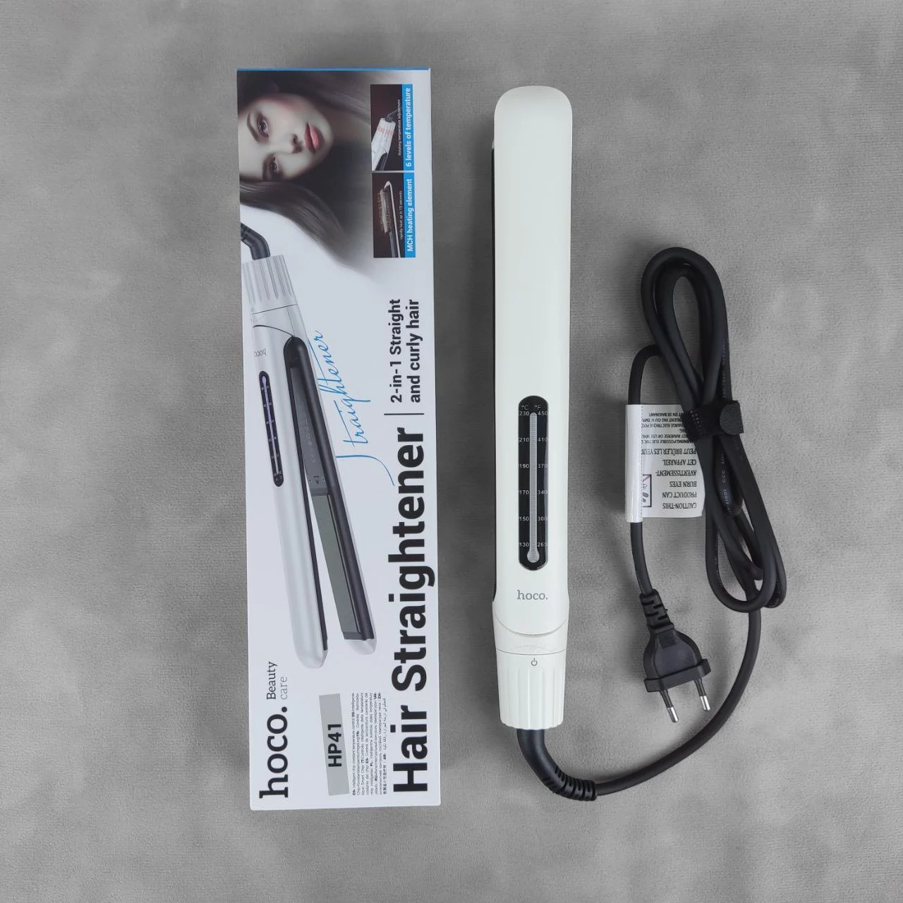 Представляем выпрямитель для волос HOCO HP41 — незаменимый инструмент для создания стильных причесок. Этот прибор идеально подходит как для повседневного использования, так и для профессиональной укладки. Он позволяет легко выпрямлять непослушные волосы или формировать изящные локоны.