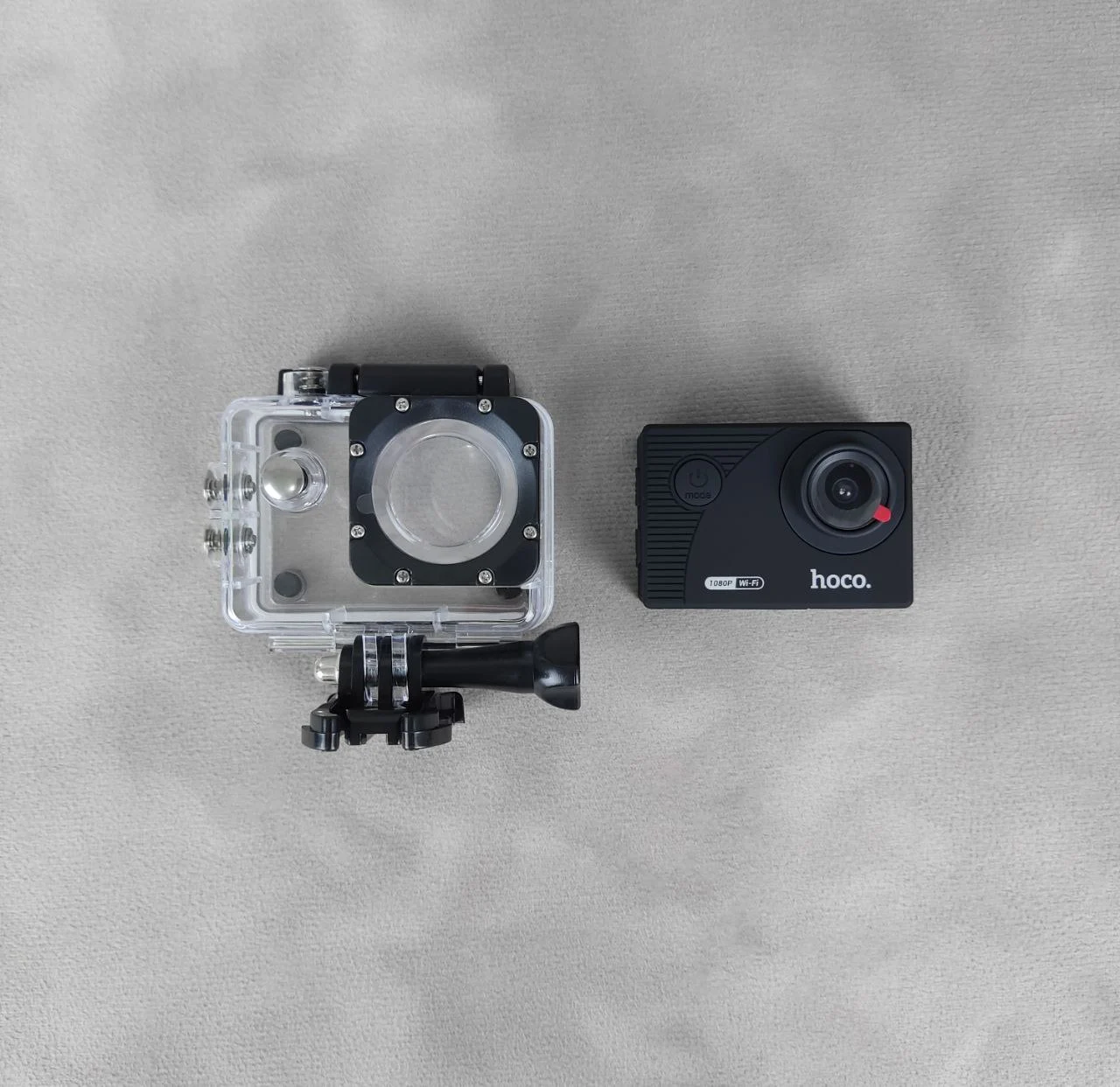 Камера оснащена 2-дюймовым дисплеем для оценки качества съемки и настройки параметров. Широкий угол обзора в 150 градусов позволяет захватывать больше пространства, а водонепроницаемый корпус обеспечивает защиту на глубине до 7,3 метров, делая её подходящей для подводной съемки. В комплекте идут крепления для фиксации камеры на шлеме, велосипеде и других поверхностях.